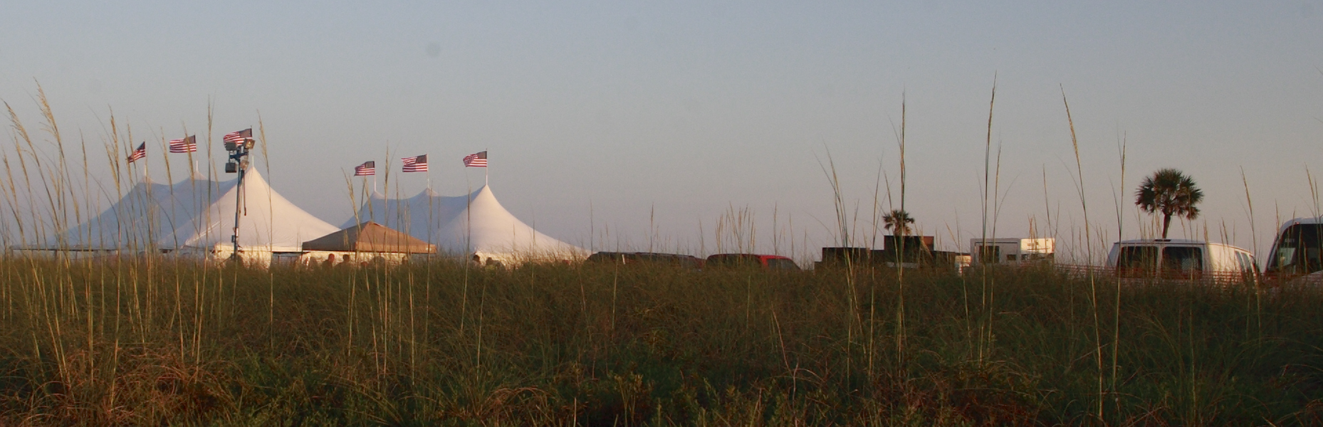 Obama spoke at tent in Orange Beach, Alabama, surrounded by security and illegal beach clean up workers from Mexico and Jamaica. [Photo courtesy of John Caylor]